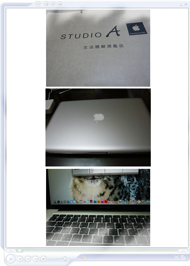在5月份,家裡買了第一台Apple系列的電腦,就是MacBook Pro I5,這台在它出來不到一個星期,老公就買了。因為他們公司開發需要用到它。要價不便宜,不過,Apple電腦的質感整體都滿優。它的螢幕還會自動調整亮光唷!!介面真的都很美,只是它的操作方式和已經用慣微軟的我,完全不同,只好慢慢習慣它。哈,懶的打文字了,就醬囉!!